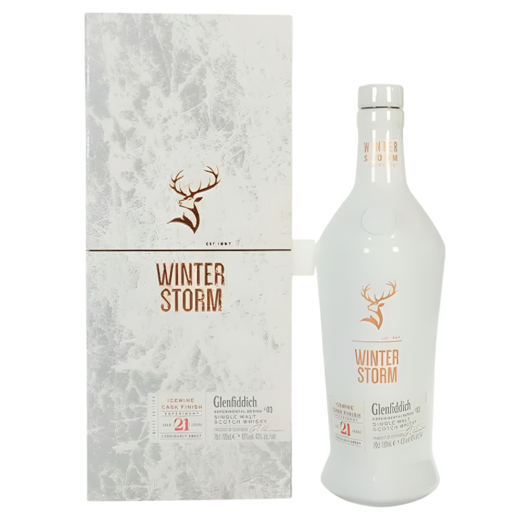 Glenfiddich 21 Year Old Winter Storm Batch #1 is the third release in the distillery’s acclaimed Experimental Series. Matured for 21 years and finished in small batches of rare Canadian icewine casks, this expression delivers a remarkable balance of sweetness and oak. The icewine finish imparts luscious tropical fruit, lychee, and honey notes, beautifully layered over Glenfiddich’s signature pear and oak character. A truly limited release, Batch #1 is a must-have for collectors and whisky enthusiasts alike. Bottled at 43% ABV.