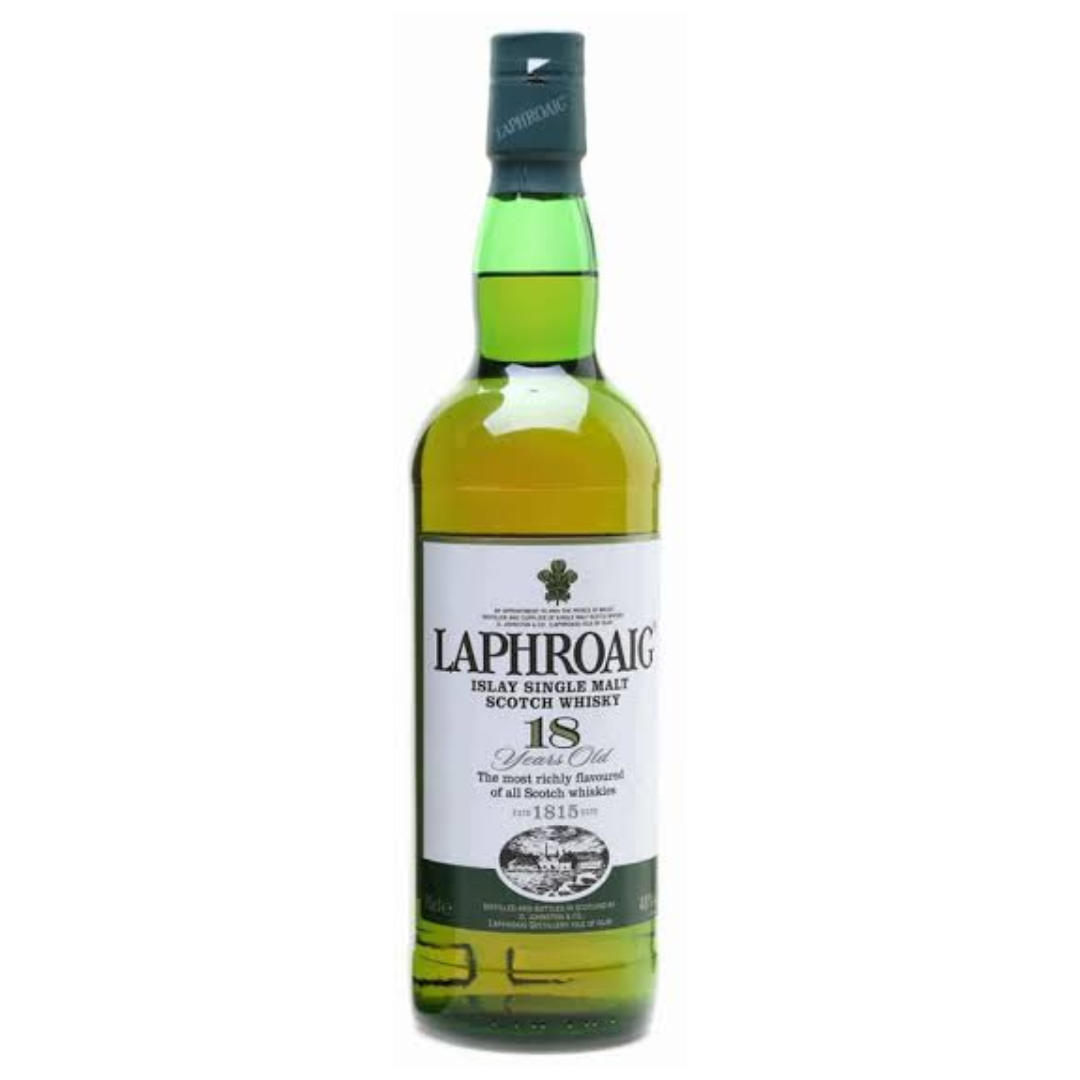 Laphroaig 18 Year Old Single Malt is truly a celebrated whisky. Produced in only limited quantities each year, this sweet and spicy 18 Year Old Single Malt from Islay delivers a peated smokiness with oak sweetness along with a faint enjoyable salinity. Bottled at 48% ABV. (Bottle size 750ml)