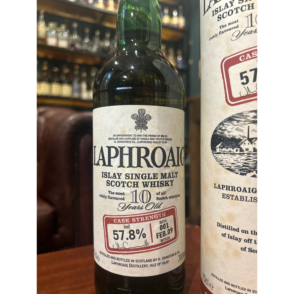 Laphroaig 10 Year Old Cask Strength Batch #001, bottled at an impressive 57.8% ABV, is a must for Islay whisky enthusiasts. This first batch, released in February 2009, delivers the intense peat and complex flavors that Laphroaig is renowned for, highlighting the pure essence of its cask strength single malt. (Bottle size 700ml)