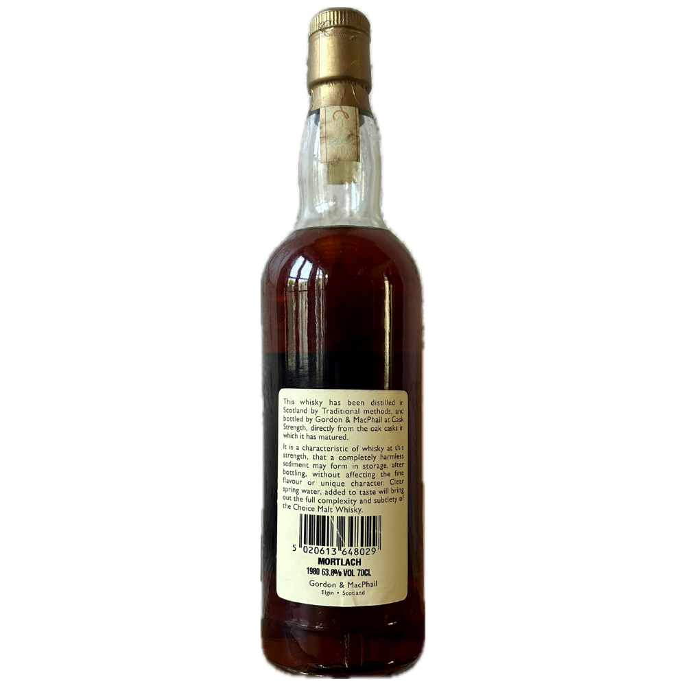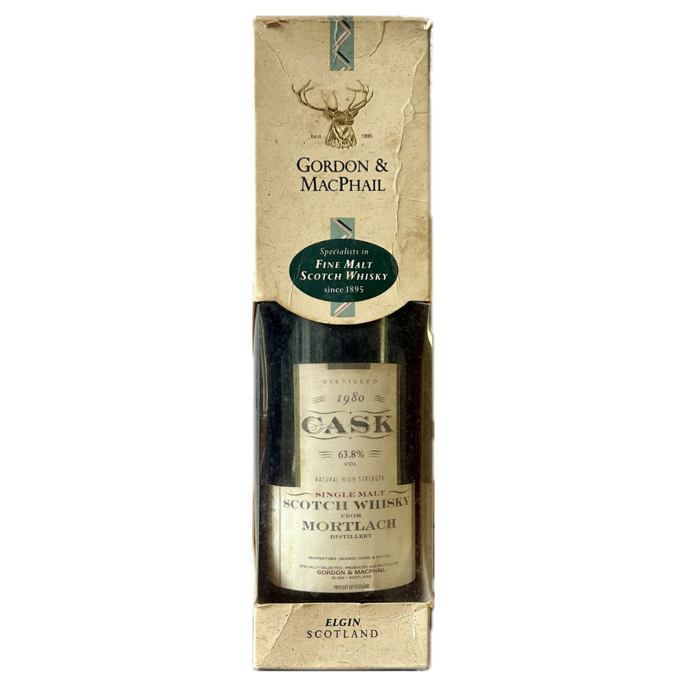 Discover the exceptional Mortlach 1980 Single Malt, a rare 21-year-old Speyside whisky bottled by Gordon & MacPhail at an impressive 63.8% cask strength. Distilled on July 24, 1980, and aged in a single refill Sherry butt, this release from the renowned Cask Strength series captures Mortlach’s robust and layered character. Bottled unfiltered on June 7, 2002, it preserves the full depth of its sherry notes and natural texture. Rated an impressive 93 points by WhiskyFun, this whisky is celebrated for its complexity.
